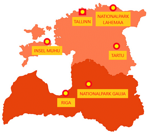 Das Baltikum – das sind drei Länder mit drei Sprachen, drei verschiedenen Kulturen und dreimal unterschiedlicher Geschichte. Doch trotz aller Verschiedenartigkeit gibt es zahlreiche Gemeinsamkeiten, die die Bewohner Litauens, Lettlands und Estlands miteinander verbinden und durch die sie sich einander nahe fühlen. Jedes der drei Länder allein ist eine Reise wert. Mit der nachfolgenden Mustertour möchten wir Ihnen zwei der Länder – Estland und Lettland – näher vorstellen. Auf der 16-tägigen Rundreise können Sie sich einen Eindruck von den einmalig schönen Landschaften, der vielfältigen Kultur und den freundlichen Menschen im nördlichen Baltikum verschaffen. Neben den Hauptstädten Tallinn und Riga werden Sie zwei Nationalparks bereisen, Estlands zweitgrößte Stadt besuchen und auf der idyllischen Insel Saaremaa übernachten. Freuen Sie sich auf wunderschöne Städte, grandiose Landschaften und sympathische Begegnungen im baltischen Norden. Tere tulemast & Laipni lūdzam – Herzlich willkommen! Wichtige Hinweise Programmverlauf 1. Tag – Ankunft: Je nach Wahl des Verkehrsmittels (z. B. Fähre oder Flugzeug) werden Sie nach Ihrer Ankunft am Hafen oder Flughafen von uns persönlich in Empfang genommen. Gemeinsam erfolgt der individuelle Transfer zu Ihrem 4-Sterne-Hotel, das sich in unmittelbarer Altstadtnähe, nur wenige Fußminuten von der oberen Altstadt – dem Domberg – befindet. Ihr Doppel- bzw. Zweibettzimmer ist mit Dusche und WC ausgestattet. Nach dem Check-In findet ein ausführliches Reiseberatungsgespräch statt, auf dem die Tour noch einmal im Detail besprochen wird und Sie weitere Materialien erhalten (guter Autoatlas und Infobroschüren zu den einzelnen Zielen Ihrer Rundreise) sowie Tipps und Hinweise für Restaurants oder Kulturelles für den ersten anstehenden Tag oder Abend. 2. Tag – Tallinn: Am Vormittag findet ab dem Hotel eine individuelle, natürlich deutschsprachige Stadtführung statt, auf der Sie die Hauptstadt Estlands erkunden werden. Im Mittelpunkt steht das mittelalterliche Tallinn, das über Jahrhunderte Reval hieß und dessen Geschichte äußerst facettenreich ist. Sie werden begeistert sein! Die Führung soll Sie überdies auf Ihre bevorstehende Rundreise vorbereiten, denn was Sie über die Esten, ihre Lebensweise, ihre Kultur und Geschichte, insbesondere aber über die politischen und gesellschaftlichen Themen der Gegenwart erfahren werden, wird Ihnen in den weiteren Tagen sicher von Nutzen sein. Der Rest des Tages ist zu Ihrer freien Gestaltung. 3. Tag – Standortwechsel: Es geht aufs Land: Am Vormittag wird Ihnen am Hotel ein Mietwagen bereitgestellt. Nach dem Auschecken fahren Sie in östliche Richtung in Estlands ältesten Nationalpark – Lahemaa. Das bedeutet „Land der Buchten“. In einem Fischerdorf an einer dieser Ostseebuchten, gelegen inmitten dichter Wälder, befindet sich auch die schöne Landpension, in der Sie für 2 Tage sein werden. Hier steht Ihnen ein Doppel-/Zweibettzimmer zur Verfügung, das mit Dusche und WC ausgestattet ist. Frühstück ist im Preis inbegriffen; weitere Mahlzeiten können Sie vor Ort bei der Dame des Hauses bestellen. Inmitten fantastischer nordischer Landschaften und einer einmaligen Ruhe werden Sie im Lahemaa-Nationalpark nicht nur vieles entdecken, sondern sich auch hervorragend erholen können. 4. Tag – Unterwegs im Lahemaa-Nationalpark: Planen Sie diese Tage nach eigenen Vorstellungen und lassen Sie sich von der wunderschönen Natur an und nahe der Ostsee begeistern. Stolze Gutshöfe und mächtige Überreste jahrhundertealter Ordensburgen werden Sie beeindrucken. Die Stille, die Sie beim Wandern durch uralte Wälder, entlang blumenreicher Wiesen, durch wacholderbewachsene Heidelandschaften oder über Bohlenwege durch Hochmoore erleben können, ist im wahrsten Sinne „ohrenbetäubend“. Die schönsten Ziele liegen in relativer Nähe zu Ihrer Unterkunft, so dass Sie sie sowohl mit dem Mietwagen als auch mit dem Rad sehr gut erreichen können. Badefreuden steht an den oft menschenleeren Ostseestränden nichts entgegen – allenfalls die etwas frischeren Meerestemperaturen im frühen Sommer oder Herbst. Doch auch dann gibt es eine spannende Alternative – ein Bad im tiefen, herrlich schwarzen Wasser eines Moorsees oder ein Besuch in einem der Wellness-Bäder in der Nähe. 5. Tag – Standortwechsel: Vom Norden in die Studentenstadt Tartu: Die nächste Etappe Ihrer Rundreise führt Sie nach Tartu, die mit ihren fast 100.000 Einwohnern zweitgrößte Stadt des Landes. Doch schon der Weg ist das Ziel. So sollten Sie Stopps an der atemberaubend schönen Ostseesteilküste im Nordosten und am im Rande des Nationalparks Alutaguse gelegenen einzigen orthodoxen Nonnenkloster Estlands einlegen. Weiter sollte Ihre Fahrt entlang des Ufers des riesigen Peipus – Europas fünftgrößtem See – in Richtung Süden gehen. Lassen Sie sich von der Vielfältigkeit der den Peipussee umgebenden Landschaften und der äußerst interessanten Kultur der hier lebenden Altgläubigen beeindrucken. In Tartu übernachten Sie im Stadtzentrum in einer gemütlichen Pension im nordischen Stil. Ihr Doppel-/Zweibettzimmer verfügt über Dusche und WC. Tartu (einst Dorpat) verfügt als Universitätsstadt über eine bunte Restaurant- und Kneipenszene, in die Sie am Abend eintauchen können. 6. Tag – Unterwegs in der „geistigen Hauptstadt“: Die älteste Hochschule des Landes, die bis heute die einzig wirkliche Volluniversität Estlands ist, prägt das Leben Tartus seit dem 17. Jahrhundert und lässt den Puls der Stadt auf eine junge und fröhliche Weise schlagen. Auf einer vormittäglichen individuellen Stadtführung werden Sie nicht nur das stolze Hauptgebäude der Alma Mater Tartuensis in Augenschein nehmen, sondern auch durch die von Klassizismus, Jugendstil und vielen bunten Holzhäusern geprägte Innenstadt wandern und den Domberg erklimmen. Für den zweiten Teil des Tages bieten sich entweder weitere Erkundungen